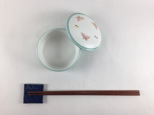 元の価格 ¥6,160現在の価格 ¥5,544【SALE】重ね小蓋物 青磁白彩ピンク蝶 8.5cm 有田焼【訳あり】