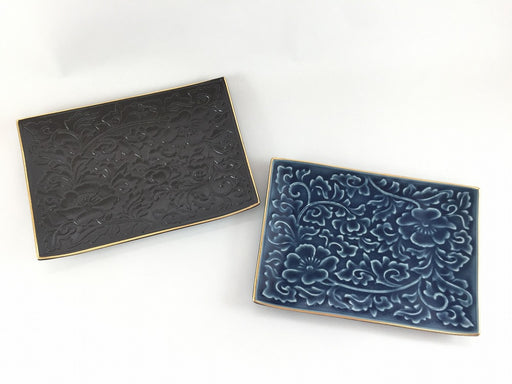 ¥3,740| /更紗紋銘々皿 渕金(黒マット釉/ルリマット釉) 15.5cm 有田焼 (j.R)