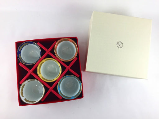 ¥55,000| /錦ベルサイユ 中国茶碗セット(5色) 60cc 箱付 有田焼(j.R)