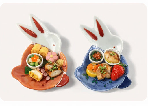 ¥2,607| /13cmうさぎ銘々皿 白マット(赤耳目/青耳目) 有田焼(j.R)