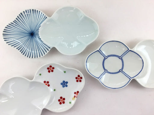 ¥1,540| /二連花小皿 (千筋/染線/梅小紋) 波佐見焼重山陶器(j.R)