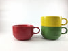 重なりの良いスープカップ。下方だけカーブが付いている形状が特徴です。色もカラフルでかわいい。贈り物にも喜ばれます。人気の波佐見焼です。