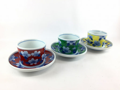 元の価格 ¥5,427現在の価格 ¥4,722| /【SALE】130ccカップソーサー 山茶花 (赤/緑/黄) 8cm 波佐見焼【訳あり】