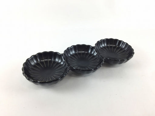 ¥2,200| /黒マット 菊型三連皿 19cm 有田焼(j.R)