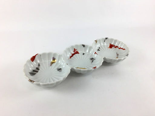 ¥3,300| /白マット金銀赤 菊型三連皿 19cm 有田焼(j.R)