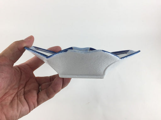 有田焼【訳あり】小さい傷あり 【サイズ】185×150×H50mm 【産 地】有田焼 佐賀県 【素 材】磁器 【諸説明】食洗機〇、電子レンジ〇、重ね〇、直火× 【質 感】ツルツル/ボコボコ 【分 類】変形鉢/浅鉢/業務用食器 【シーン】造り(刺身)/デザート