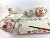 レトロで味のある色合いのシリーズ。、ストンとした形状の蓋物。手書きの模様がとてもおしゃれです。
