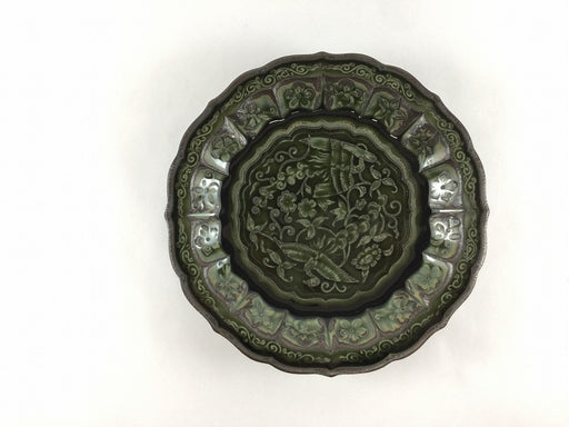 ¥6,050| /花鳥彫5寸皿 黒緑 16cm 有田焼福泉窯(j.R)