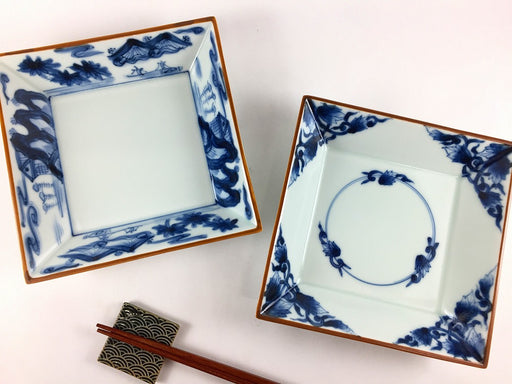 ¥9,240| /7寸正角向付 古染(山水/唐草紋) 14.5cm 有田焼(j.R)