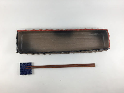 元の価格 ¥6,000現在の価格 ¥5,400| /【SALE】一刀彫33長皿.焼〆渕赤黒 33cm 有田焼(j.R)【訳あり】