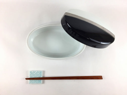 元の価格 ¥10,560現在の価格 ¥9,504| /【SALE】白黒Pライン楕円蓋物 17cm 有田焼【訳あり】