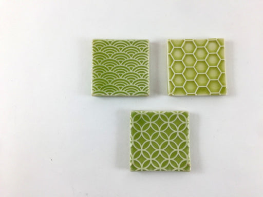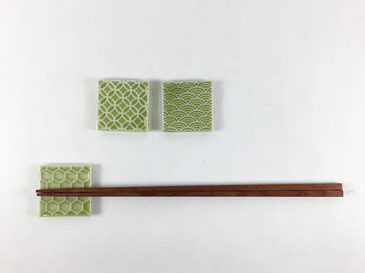 ¥880| /角ハシオキ 彫刻 ヒワ釉(青海波/亀甲/七宝) 4cm 有田焼 梶謙製磁(j.R)