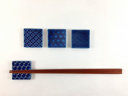 ¥880| /角ハシオキ 彫刻 マリンブルー(亀甲/七宝/青海波/麻の葉) 4cm 有田焼 梶謙製磁(j.R)