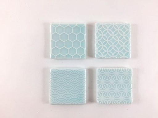 ¥880| /角ハシオキ 彫刻 青白磁(七宝/亀甲/青海波/麻の葉) 4cm 有田焼 梶謙製磁(j.R)