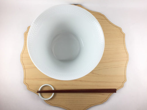 波佐見焼一真窯細かな彫が可愛いパスタボウル。 【使用例】サラダ、パスタ、 大皿料理、など 【サイズ】φ248×H40mm【窯 元】一真窯 波佐見焼【素 材】磁器【質 感】ツルツル 【諸説明】食洗機〇、電子レンジ〇、重ね〇、直火×