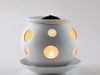 お茶の葉に熱を加えて、香りを楽しむための香炉のことを茶香炉(ちゃこうろ)といいます。香炉のなかにローソクを入れて、その熱で上皿の茶葉を温めて香りを出す道具で、部屋に漂うお茶の香りが気分をリラックスさせてくれる天然のアロマテラピーです。茶葉の代わりにアロマを数滴垂らしてもご使用いただけます。