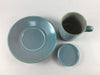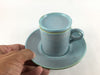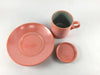珍しい蓋付コーヒー碗皿。蓋に砂糖ミルクを置いて。蓋にちょっとしたお菓子を置いて、蓋が小皿になる便利さ。カラフルな3色をご準備してます。