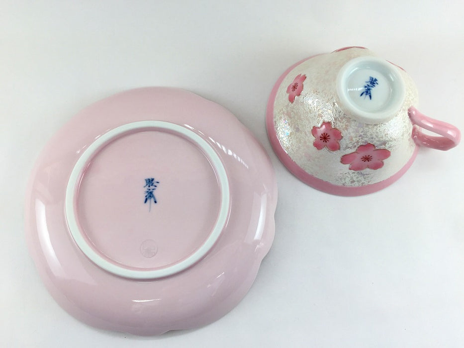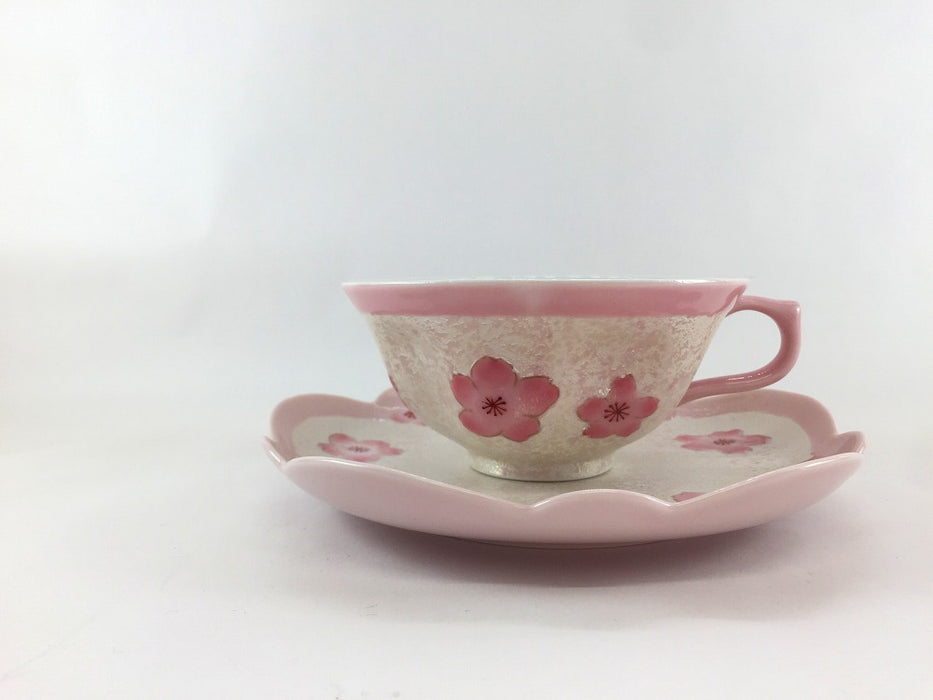 淡いピンクと桜の組み合わせがおしゃれなカップ&ソーサー。ポコッと立体的に浮かび上がった桜が可愛らしい。飲み物を注ぐと桜の形になります!ソーサーはプレートとしても使いやすいサイズです。贈り物にも喜ばれそう、、!