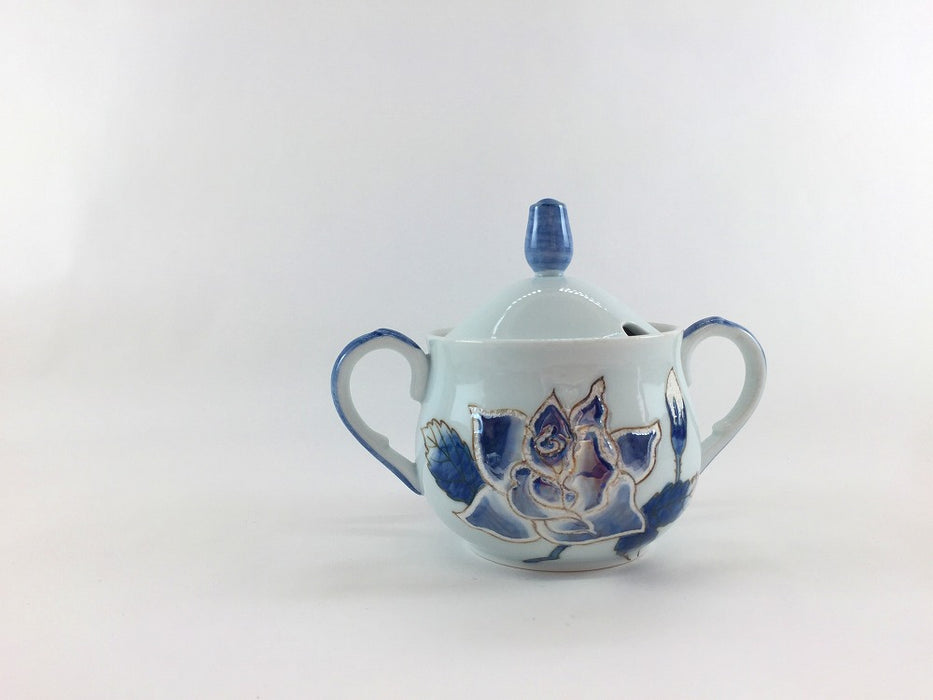 おしゃれで上品な、シュガーポット。コロンとした形状が可愛らしい。バラの花がパールで縁取ってあるので、立体的でポコポコしています。贈り物にも喜ばれそう、、!