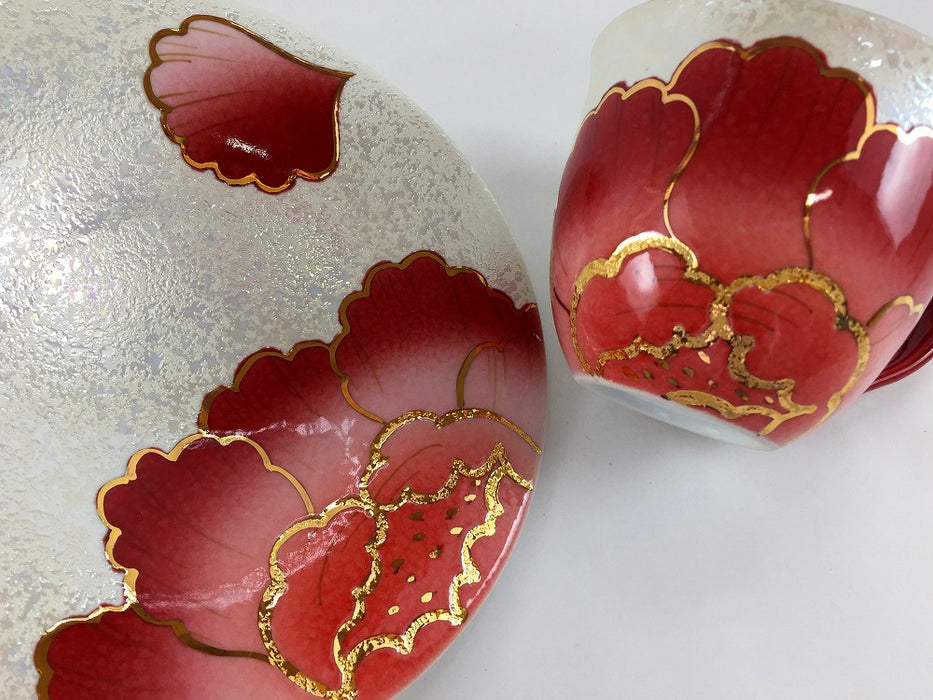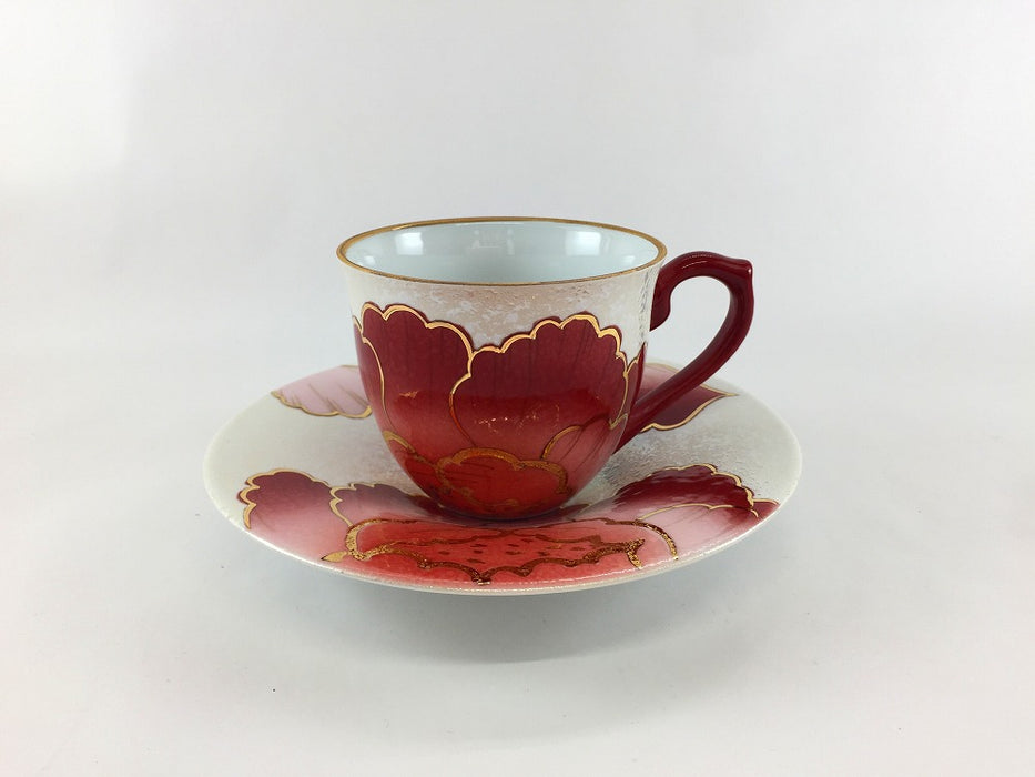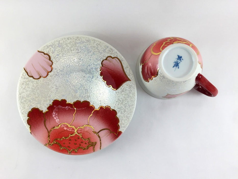 おしゃれで上品、とても豪華なカップ&ソーサー。迫力のある牡丹の花が素敵です。花の中央が金・銀で縁取ってあり、立体的でポコポコしています。どちらのカラーがお好みですか?贈り物にも喜ばれそう、、!